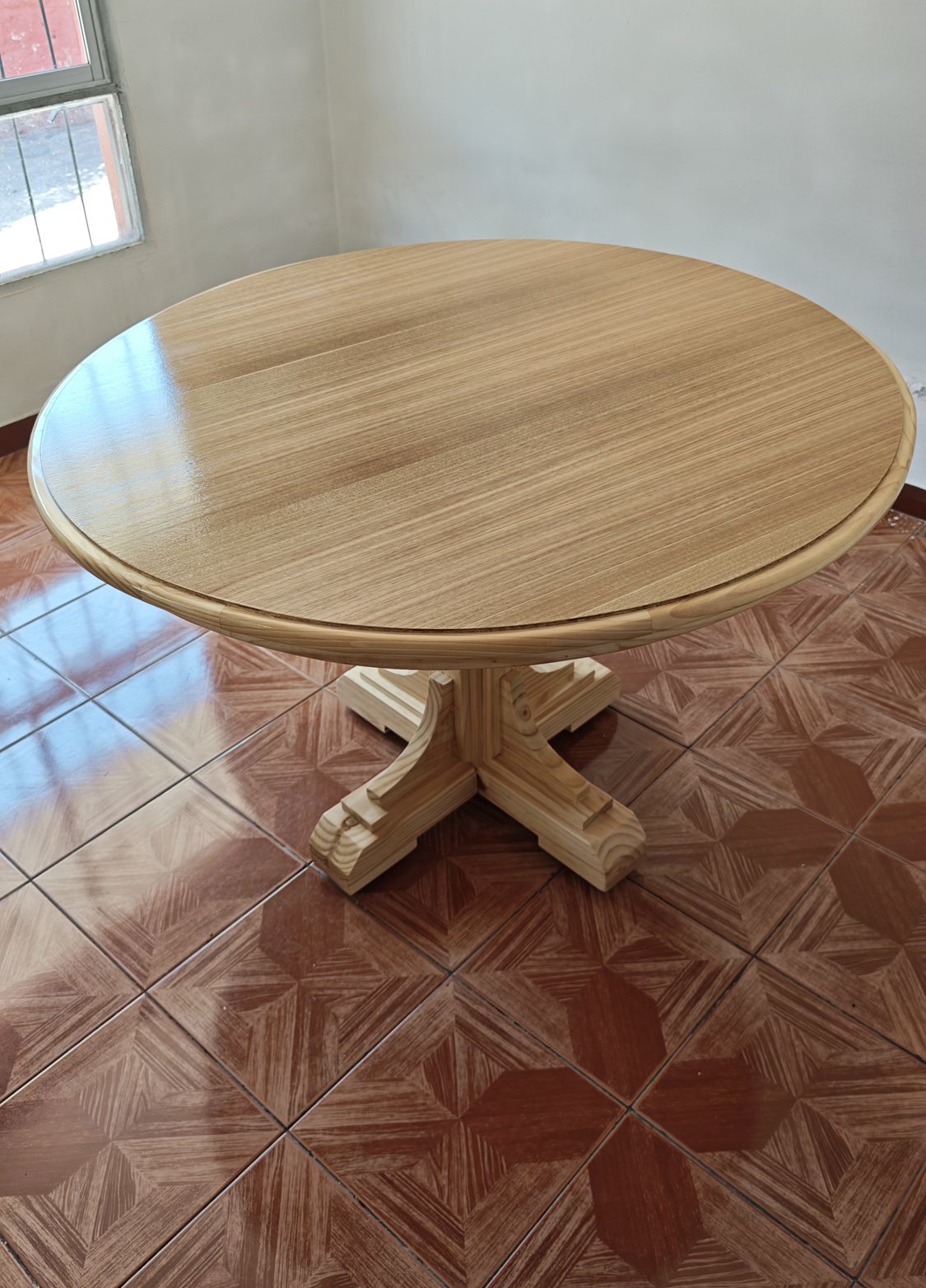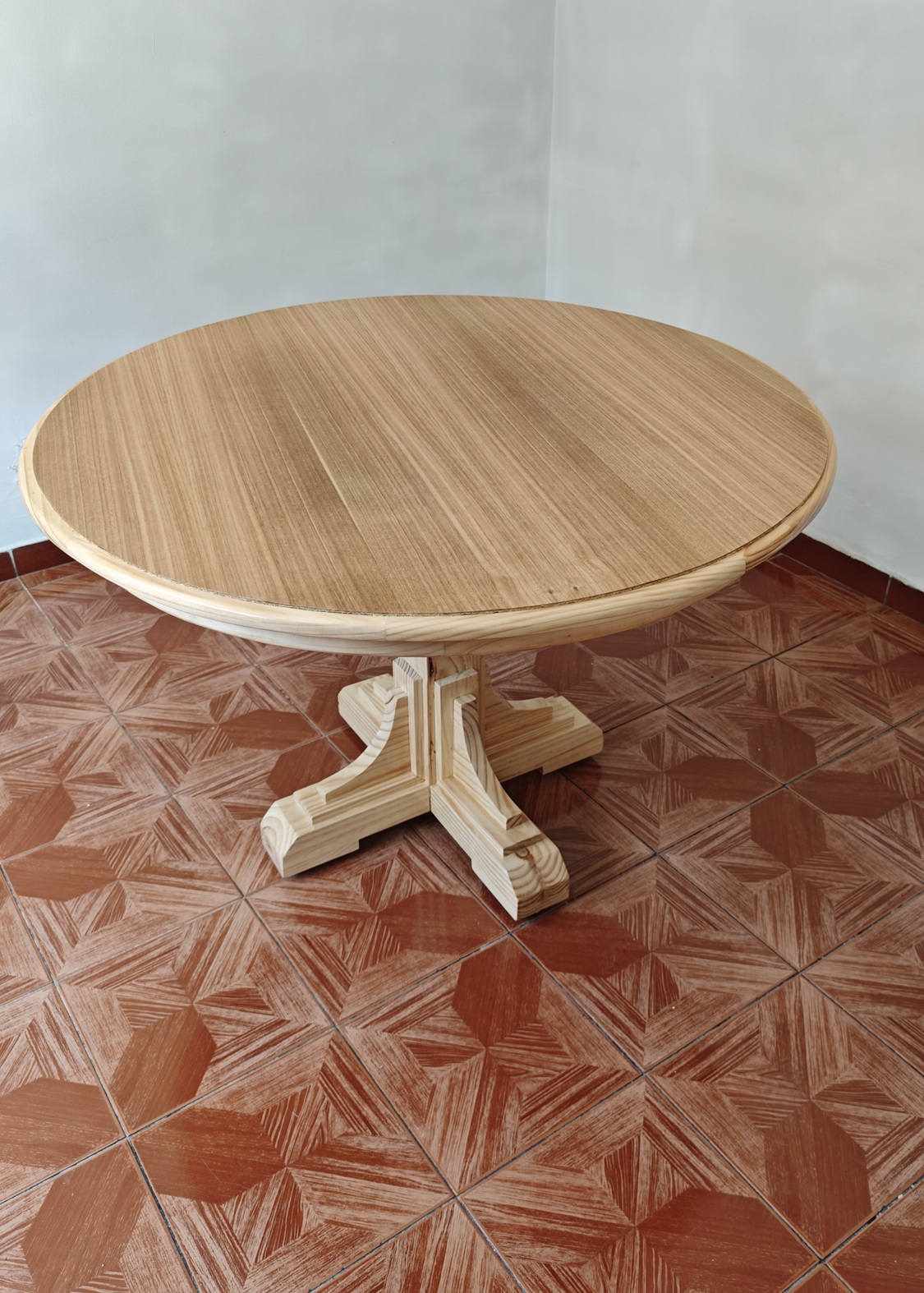 Piña 100% madera, cubierta marco de madera y placa de aglomerado de eucalipto en el centro.